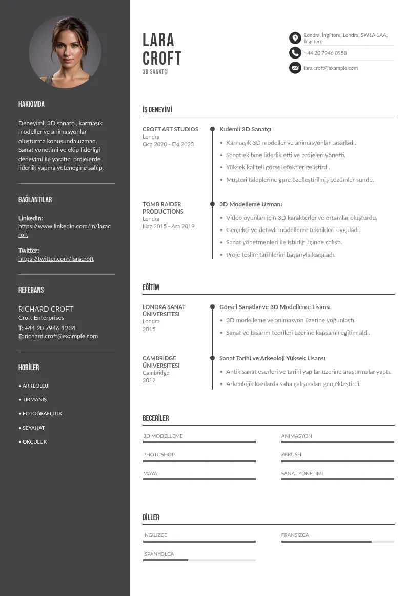 Her bir maddeyi dikkatlice doldurarak, etkileyici ve kapsamlı bir 3D Sanatçı CV'si oluşturabilirsiniz.