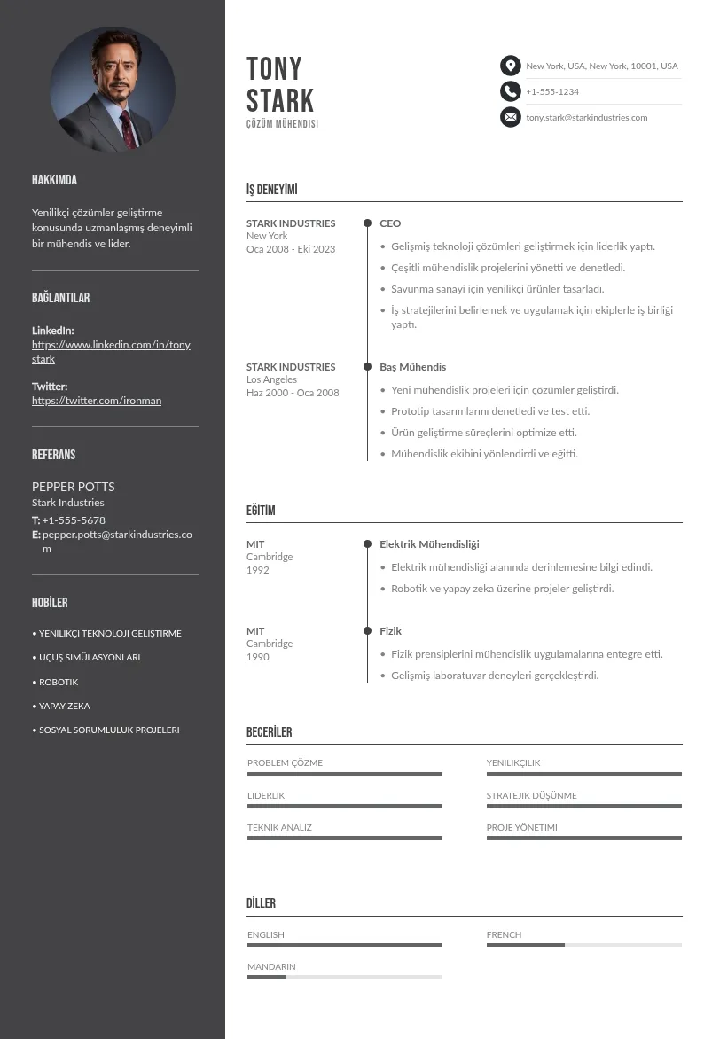 Uzmanca tarafından tasarlanmış özgeçmiş şablonları koleksiyonumuz, kalabalıktan sıyrılmanıza ve hayalinizdeki işe bir adım daha yaklaşmanıza yardımcı olacak.