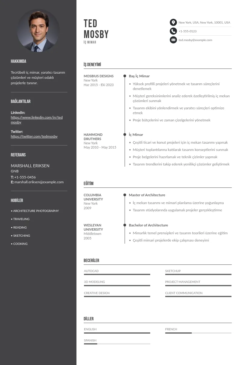 İç Mimar CV | 9 Örnekler ve Tavsiyeler ile En Etkili Özgeçmiş Şablonları