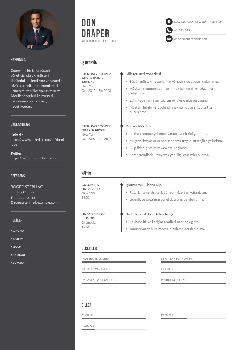 Özgeçmişinizin şablonunu nasıl seçtiniz ve nasıl yapılandırdınız? İyi yapılandırılmış bir CV, Kilit Müşteri Yöneticisi pozisyonu için rekabetçi pazarda öne çıkmanın anahtarıdır.