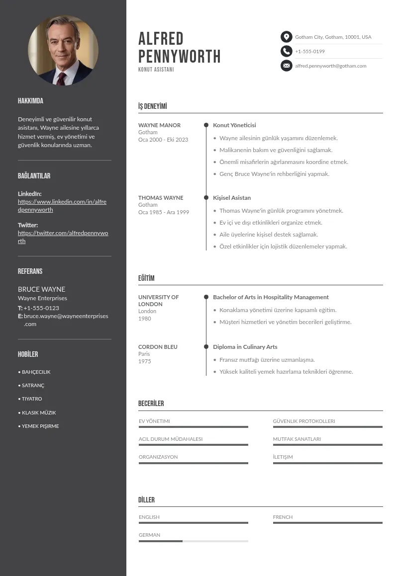 Konut Asistanı pozisyonu gibi rekabetin yüksek olduğu bir iş piyasasında, iyi organize edilmiş bir özgeçmiş, profesyonellik ve dikkat çekicilik arasında bir köprü kurar. Unutmayın, iyi bir şablon, becerilerinizi ve deneyimlerinizi doğru bir şekilde yansıtabilir.
