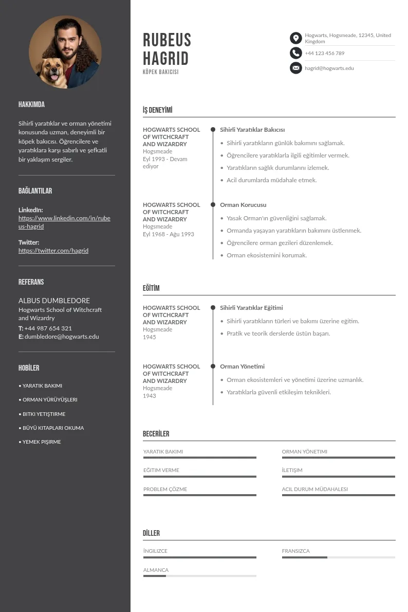 Unutmayın, iyi tasarlanmış bir özgeçmiş, yeteneklerinizi en iyi şekilde sergileyen bir podyum gibidir. İşte bu yüzden özgeçmişiniz, tıpkı bir köpeğin kuyruğunu sallaması gibi dikkat çekici ve neşeli olmalıdır!