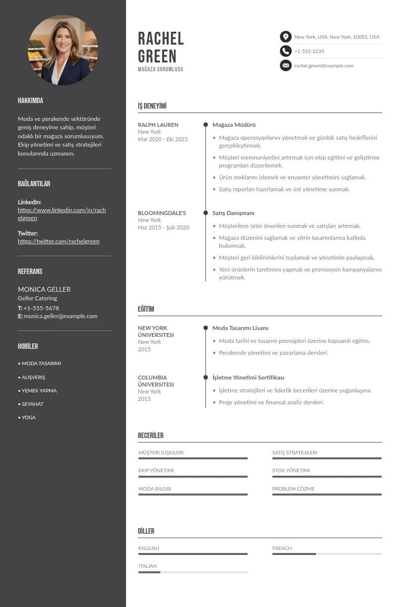 Bu stilistik ayarlarla CV’nizi mağaza sorumlusu pozisyonuna uygun hale getirerek, ilk izlenimde fark yaratabilir ve profesyonelliğinizi vurgulayabilirsiniz.