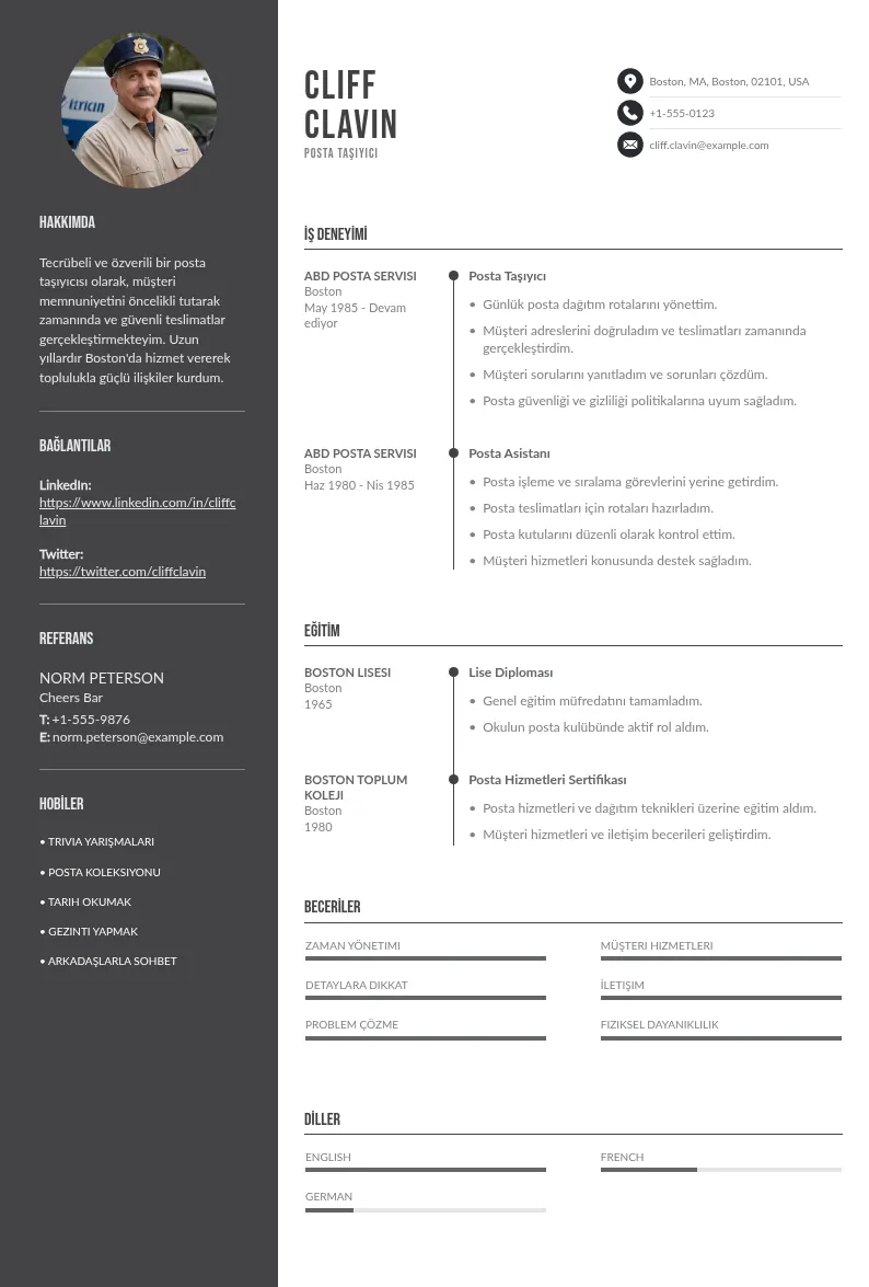 Mail taşıyıcı CV'si, özgeçmişi postacı titizliğiyle inceleyen işe alım uzmanlarına kariyer mektubunuzu ulaştırır.
