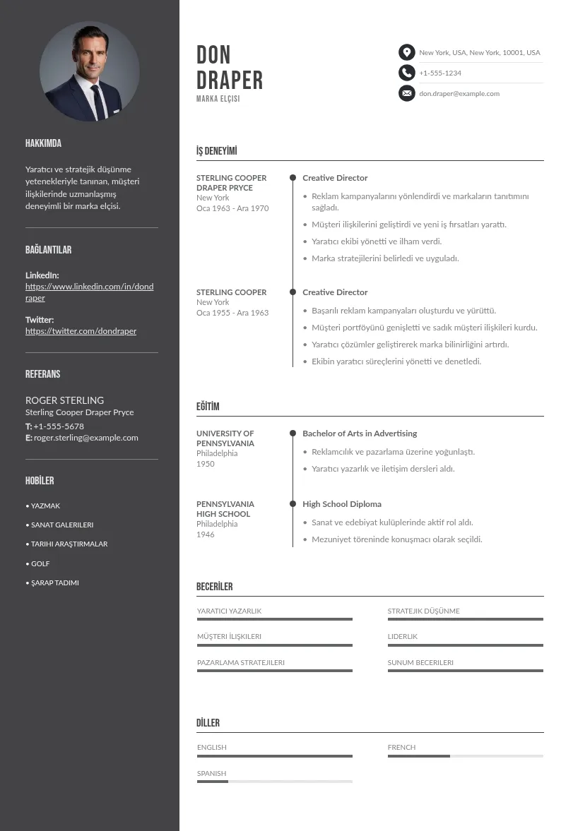 Bir marka elçisi için CV, pazarlama uzmanları, İK profesyonelleri ve yöneticilere etkileyici bir vitrin sunar; markayı yüceltir.