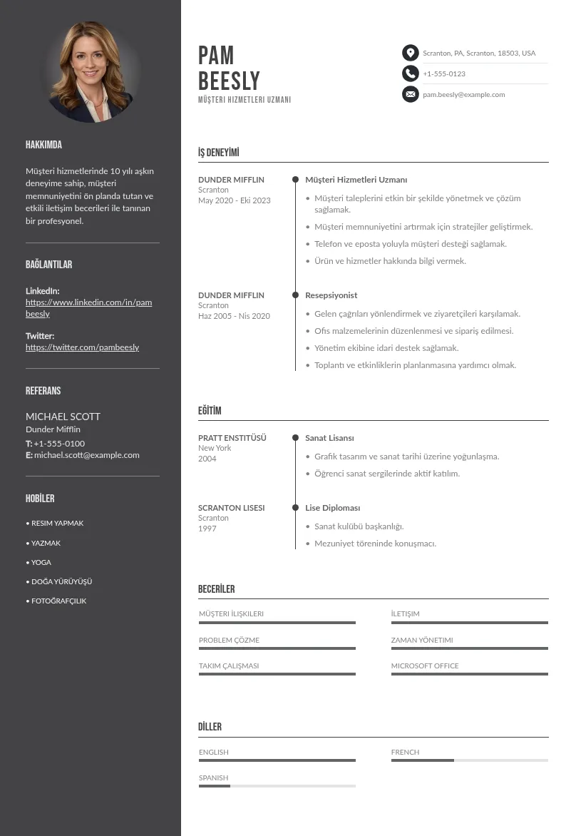 bölümü, hayalinizdeki müşteri hizmetleri temsilcisi pozisyonuna kabul edilme şansınızı arttırabilir. Yabancı Dil becerilerinizi yazarken seviyenizi ve sertifikalarınızı belirtmeyi unutmayın.