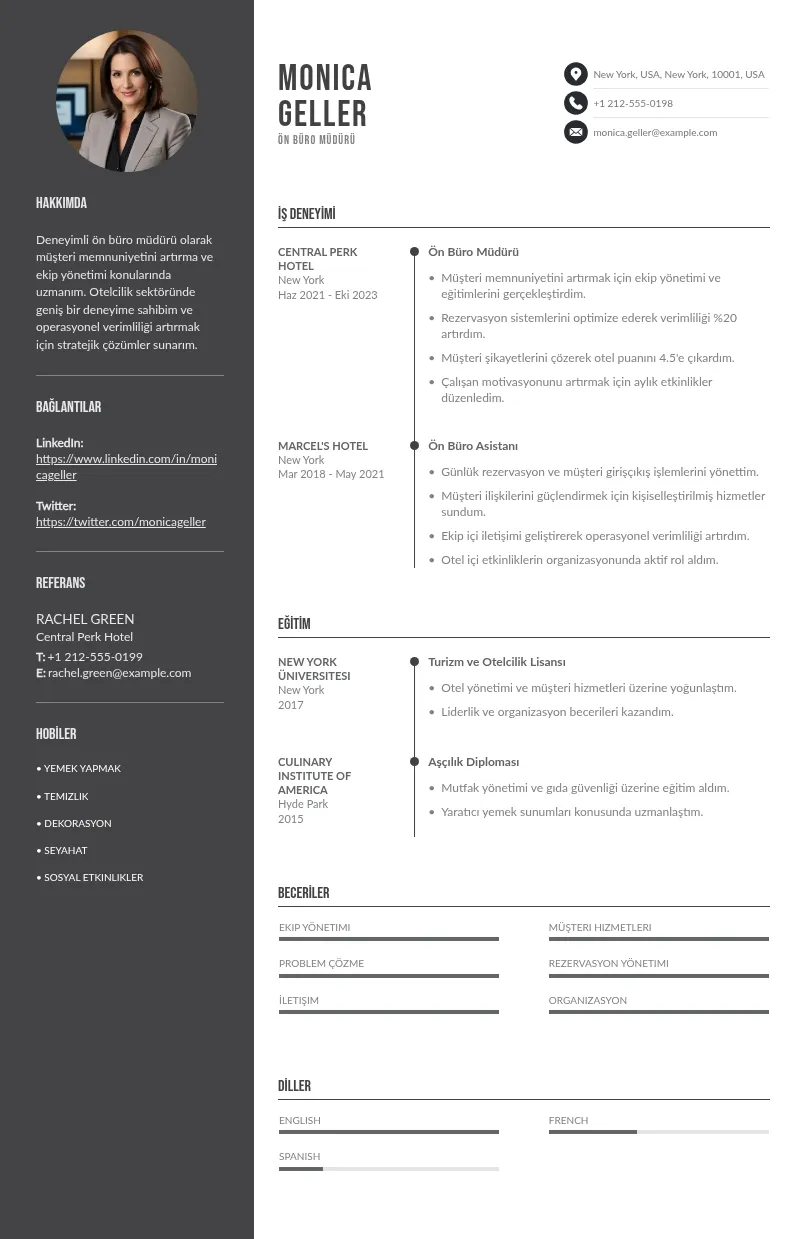 Ancak, tüm durumlarda eğitim bilgilerinin özgeçmişte ilk sıraya gelmesi gerekmez. Örneğin, bir aday ön büro müdürü pozisyonu için yeterli deneyime sahipse ve bu deneyim, iş ilanında belirtilen nitelikleri ve becerileri doğrudan yansıtıyorsa, önce deneyim bilgilerini sunmak daha etkili olabilir. Bu, adayın pratikte sahip olduğu becerileri ve başarıları gösterir, bu da eğitimden daha önemli olabilir. Örneğin, bir adayın özgeçmişi, önceki bir işte ön büro operasyonlarını başarıyla yönettiğini ve önemli müşteri hizmetleri hedeflerini aştığını gösteriyorsa, işveren bu deneyimi ve başarıları eğitimden daha değerli bulabilir.