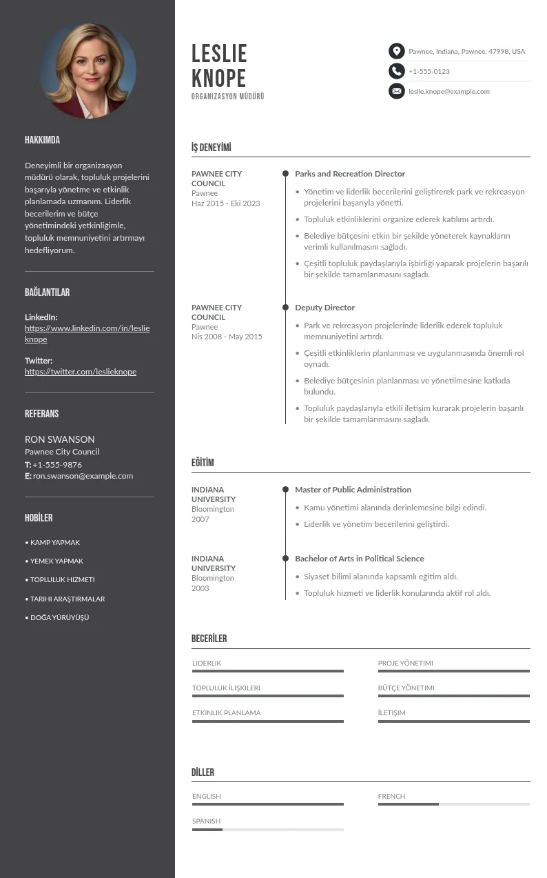 Aşağıda, Organizasyon Müdürü pozisyonu için bir örnek özgeçmiş bulacaksınız; lütfen bu taslağı kendi deneyim ve becerilerinize göre özelleştirin.