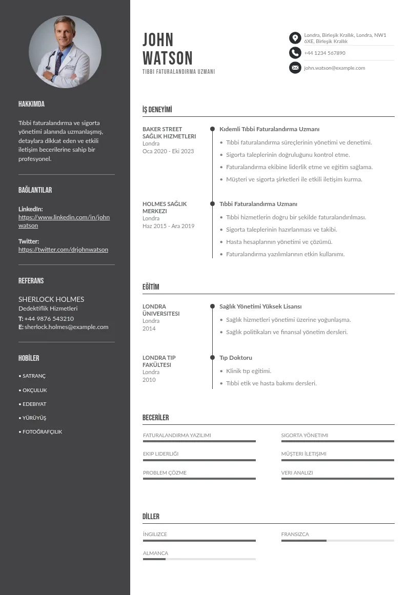 CV'me fotoğraf koymalı mıyım? Tıbbi Faturalandırma Uzmanı olarak, genellikle becerilerim ve deneyimim ön planda olmalıdır. Fotoğraf koymak genellikle gerekli değildir çünkü bu pozisyon, yüz yüze etkileşimden çok analitik becerilere dayanır. Ancak, çalışmak istediğim şirket özellikle fotoğraf istiyorsa, profesyonel bir görünüm sergilemek önemlidir.