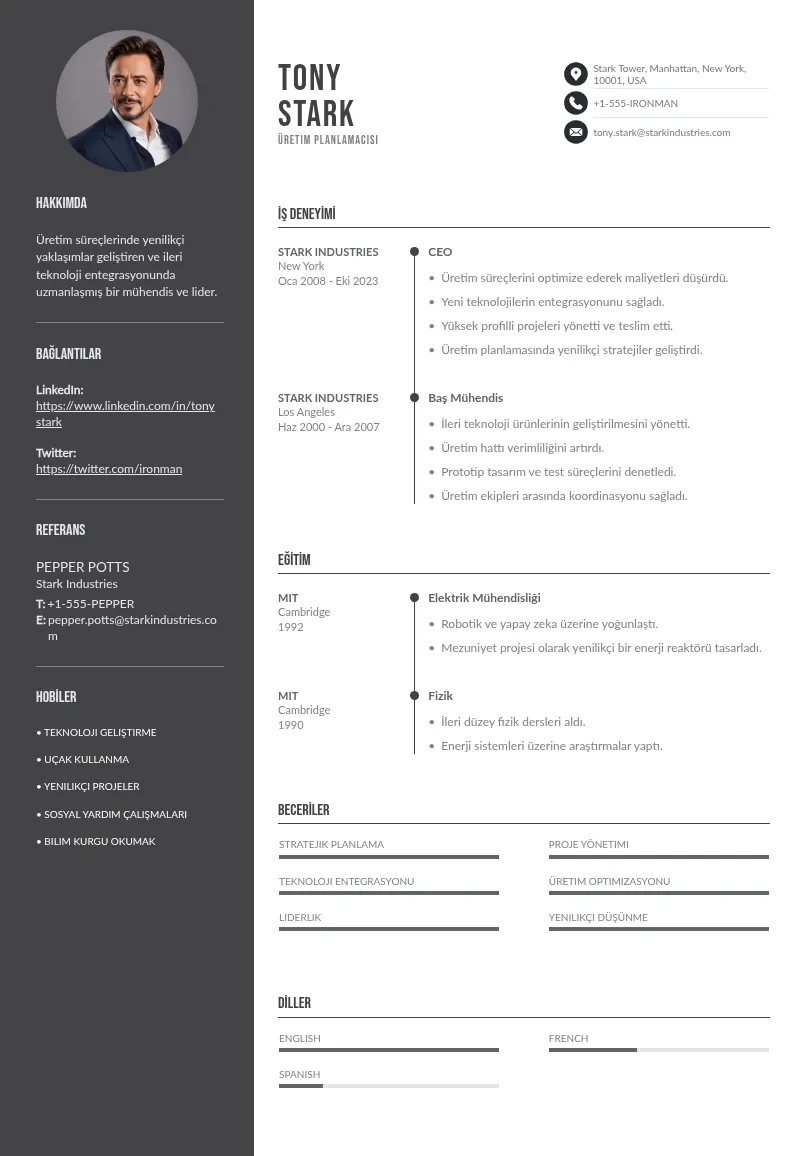 Kariyer hedeflerine ulaşmak ve karşılaşılan zorlukları aşmak, özgeçmişin düzenine ve yapısına verilen öneme bağlıdır. Örneğin, muhasebe uzmanının CV'si, içeriği ve sunumuyla kusursuz olmalıdır; genç bir iş arayanın CV'si belirli bir düzen ve yapıya sahip olmalıdır; bir eczacının CV'si, profesyonel profilini vurgulayan temiz bir düzen ve iyi yapılandırılmış içeriğe dayanmalıdır; ve bir inşaat mühendisinin CV'si, işle ilgili tüm bilgileri yansıtacak şekilde hazırlanmalıdır. Üretim planlamacısı pozisyonu için de aynı durum geçerlidir. CV'nin düzeni ve yapısı, işverenlerin adayın yeteneklerini ve profesyonellik seviyesini hızlı ve etkili bir şekilde değerlendirmesine yardımcı olur.