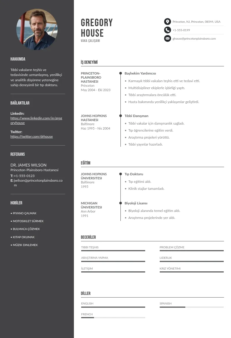 Aşağıdaki örnek özgeçmiş, vaka çalışanı pozisyonu için hazırlanmıştır ve kişinin kendi deneyimlerine göre özelleştirilebilir.